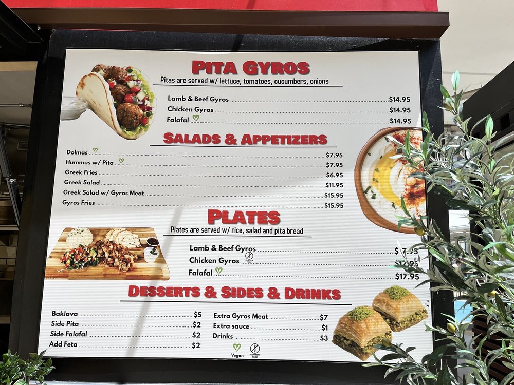 Located in the heart of San Francisco, Pita Gyros offers a taste of authentic Greek cuisine with a focus on their signature Gyros dishes. From Chicken Gyros Pitas to Lamb & Beef Gyros Plates, each dish is served with fresh lettuce, tomatoes, cucumbers, and onions for a burst of Mediterranean flavors. The Greek salads at Pita Gyros are a must-try, featuring crisp lettuce, juicy tomatoes, tangy feta, olives, and cucumbers topped with a Greek dressing. Whether you choose the Falafel Plate or the Gyro Meat Salad, each dish is prepared with care and attention to detail, making every bite a delightful experience. With options for delivery, takeout, and outdoor seating, Pita Gyros is the perfect spot to satisfy your craving for delicious Greek fare.